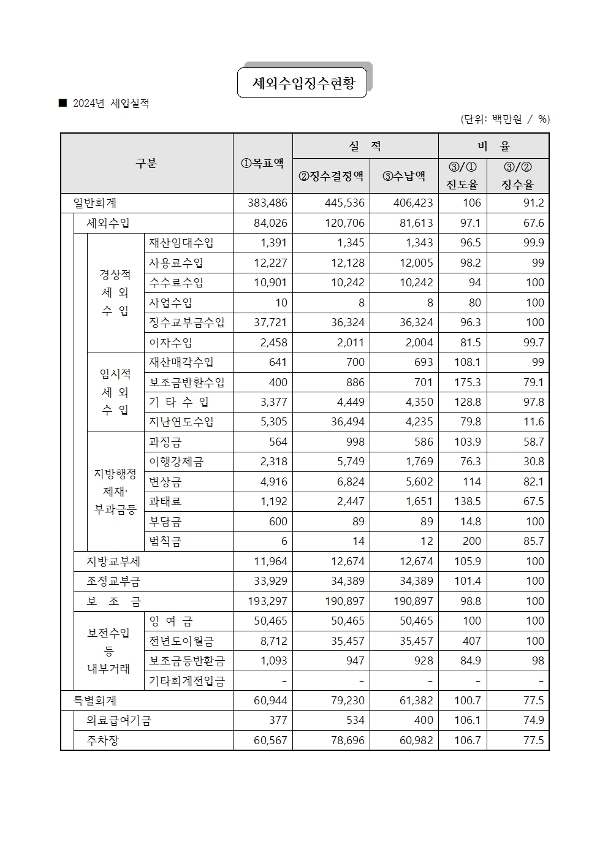 | 제목 | 2024년 세외수입 징수현황 | ||