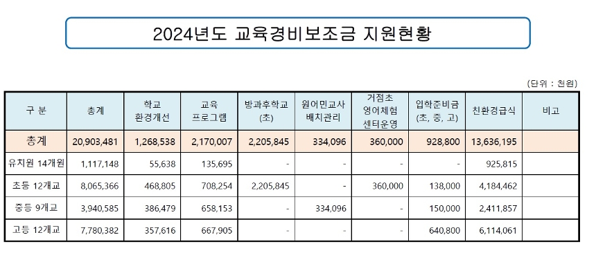 | 제목 | 2024년도 교육경비보조금 지원현황 | ||