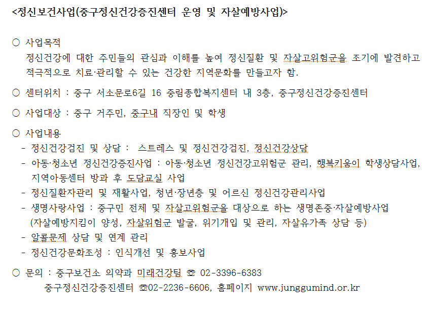 | 제목 | 정신보건사업 및 자살예방사업 안내 | ||
