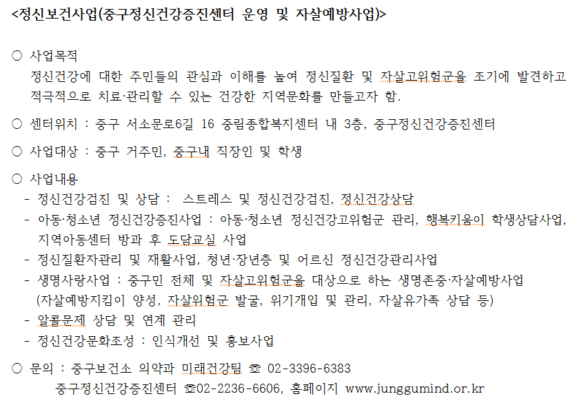 | 제목 | 정신보건사업 및 자살예방사업 안내 | ||