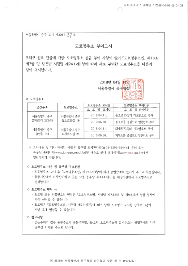 | 분류 | 일반공공행정 > 일반행정 > 주소정책 > 도로명주소 부여 및 폐지 고시 | ||