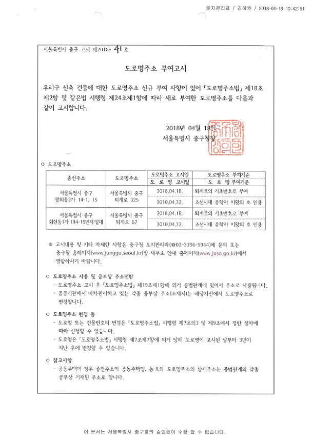 | 분류 | 일반공공행정 > 일반행정 > 주소정책 > 도로명주소 부여 및 폐지 고시 | ||