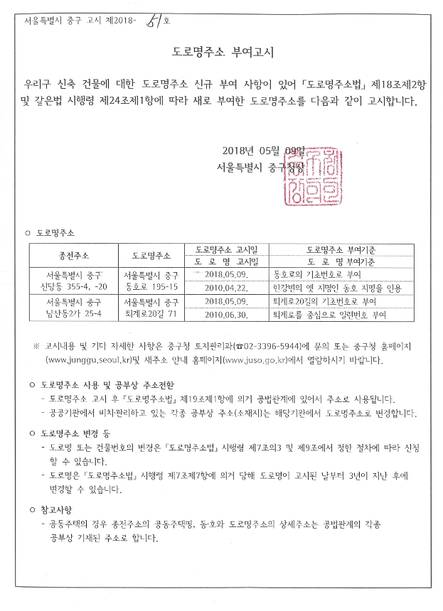 | 제목 | 도로명주소 부여 고시 | ||