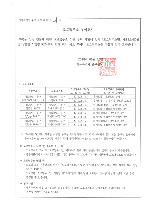 | 분류 | 일반공공행정 > 일반행정 > 주소정책 > 도로명주소 부여 및 폐지 고시 | ||