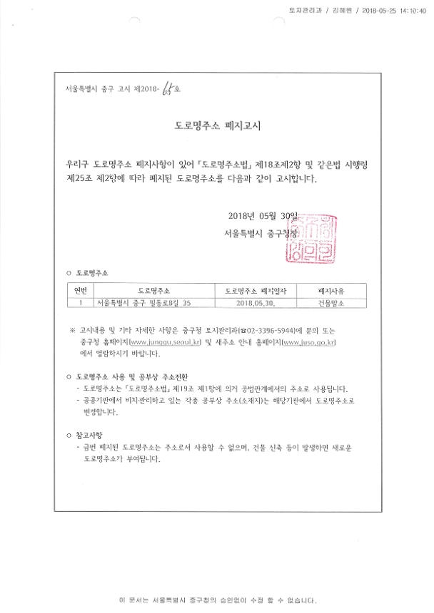 | 분류 | 일반공공행정 > 일반행정 > 주소정책 > 도로명주소 부여 및 폐지 고시 | ||