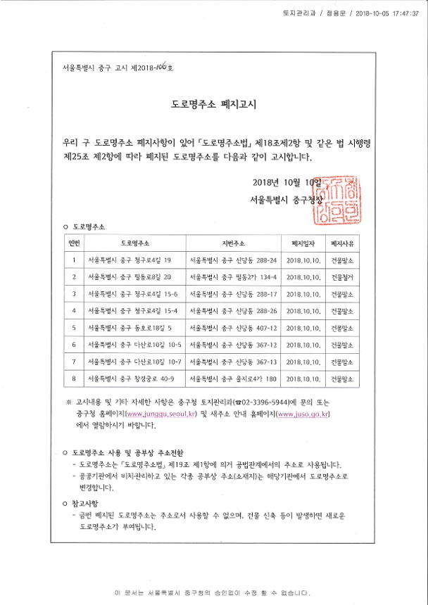 | 분류 | 일반공공행정 > 일반행정 > 주소정책 > 도로명주소 부여 및 폐지 고시 | ||