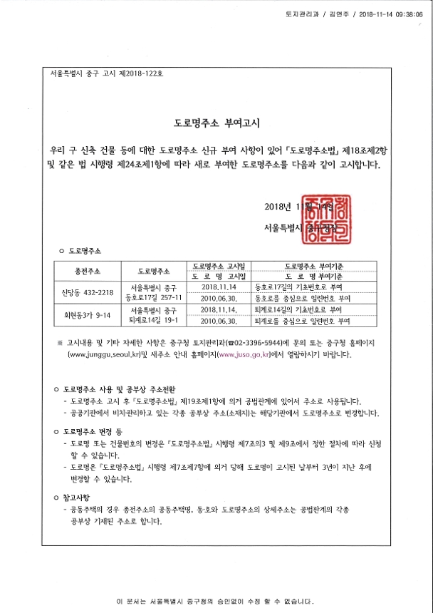 | 분류 | 일반공공행정 > 일반행정 > 주소정책 > 도로명주소 부여 및 폐지 고시 | ||