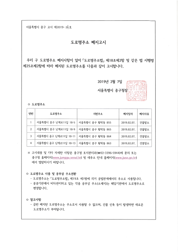 | 제목 | 도로명주소 폐지 고시 | ||
