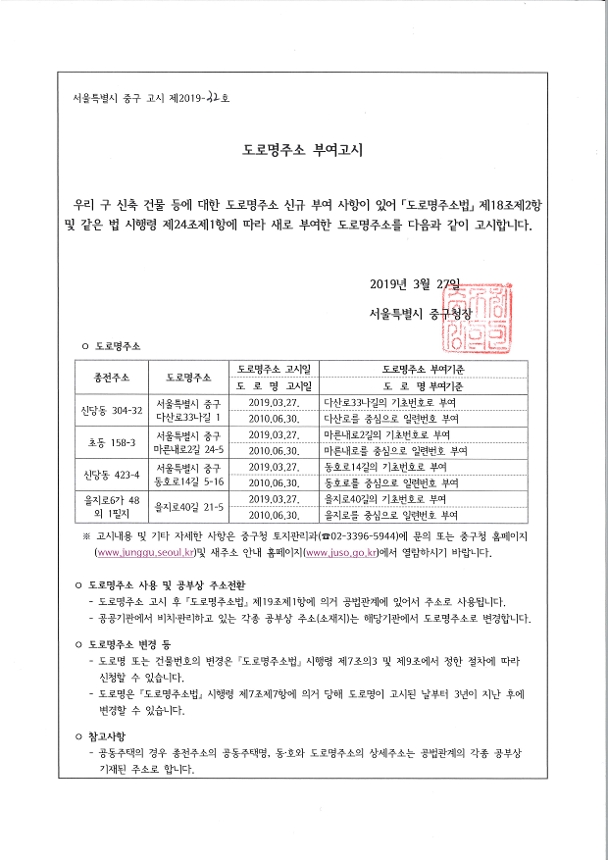 | 분류 | 일반공공행정 > 일반행정 > 주소정책 > 도로명주소 부여 및 폐지 고시 | ||