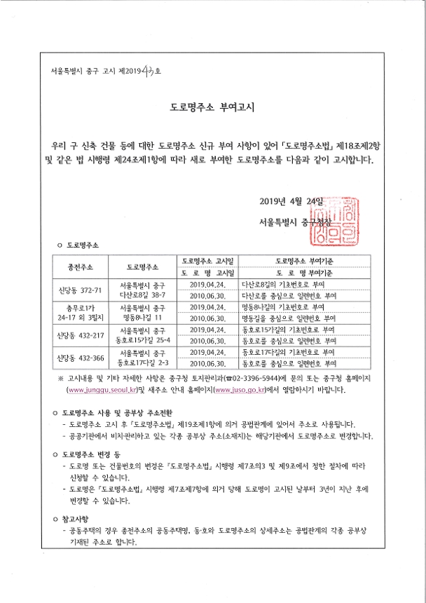 | 분류 | 일반공공행정 > 일반행정 > 주소정책 > 도로명주소 부여 및 폐지 고시 | ||