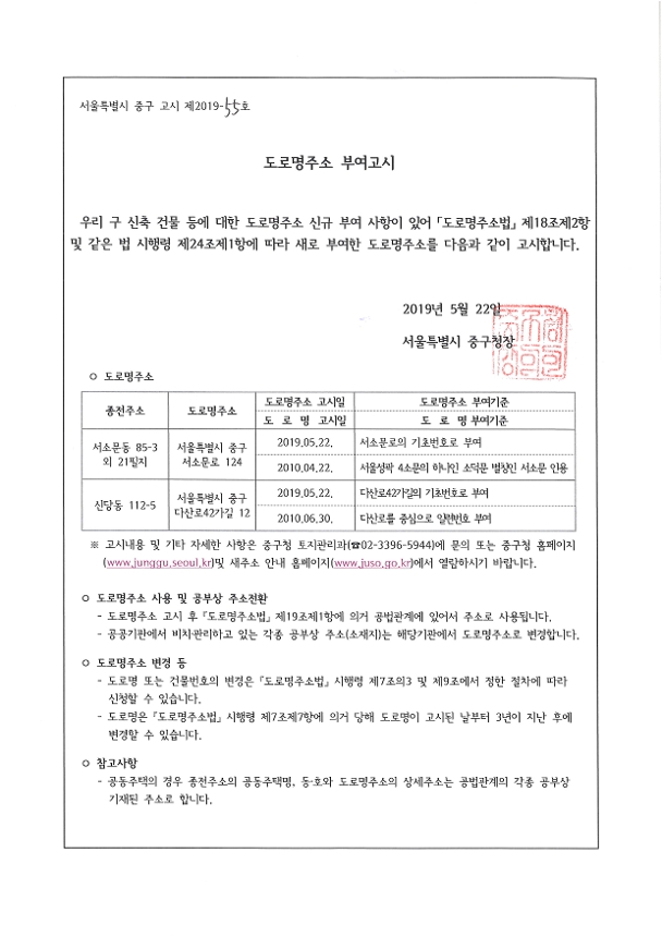 | 분류 | 일반공공행정 > 일반행정 > 주소정책 > 도로명주소 부여 및 폐지 고시 | ||