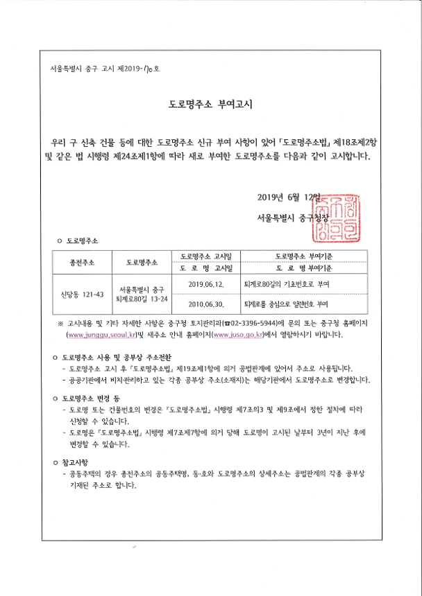 | 분류 | 일반공공행정 > 일반행정 > 주소정책 > 도로명주소 부여 및 폐지 고시 | ||