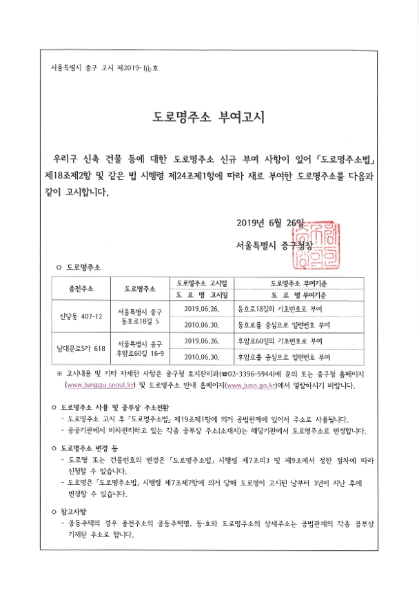 | 분류 | 일반공공행정 > 일반행정 > 주소정책 > 도로명주소 부여 및 폐지 고시 | ||