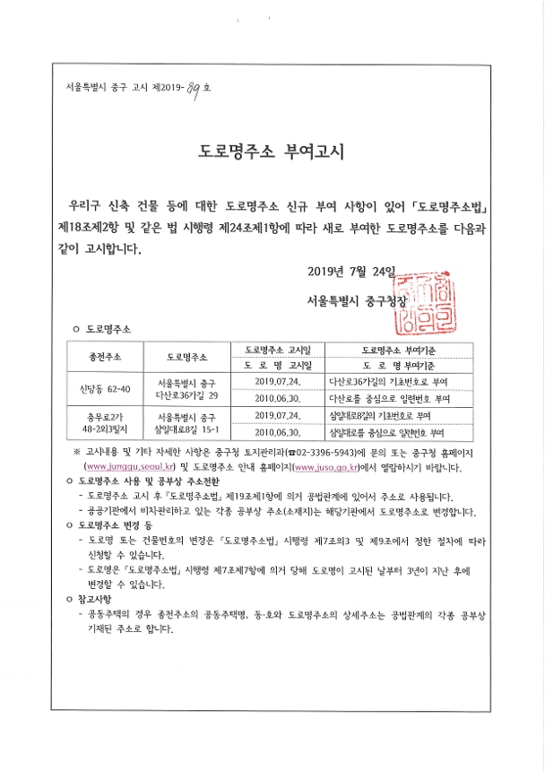 | 분류 | 일반공공행정 > 일반행정 > 주소정책 > 도로명주소 부여 및 폐지 고시 | ||