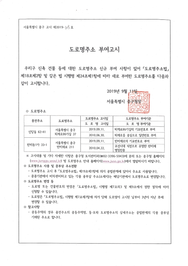 | 제목 | 도로명주소 부여 고시 | ||