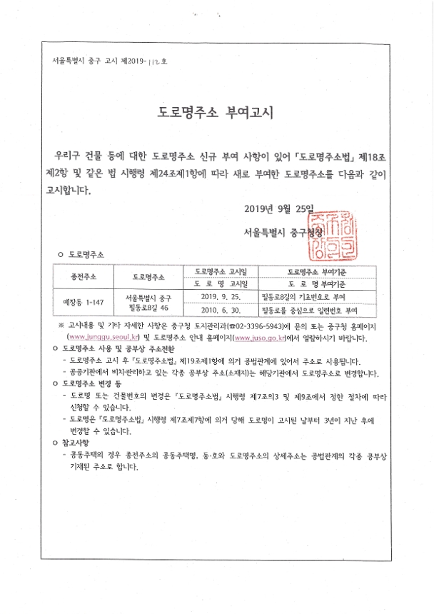 | 분류 | 일반공공행정 > 일반행정 > 주소정책 > 도로명주소 부여 및 폐지 고시 | ||