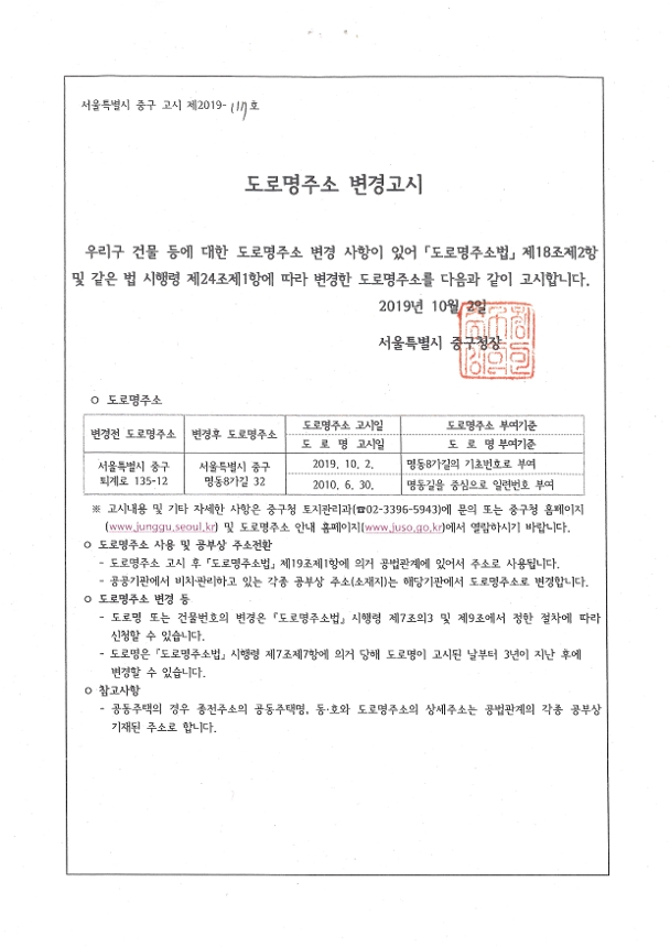 | 제목 | 도로명주소 변경 고시 | ||