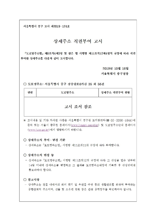| 분류 | 일반공공행정 > 일반행정 > 주소정책 > 도로명주소 부여 및 폐지 고시 | ||