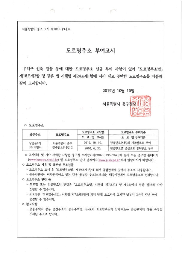 | 분류 | 일반공공행정 > 일반행정 > 주소정책 > 도로명주소 부여 및 폐지 고시 | ||