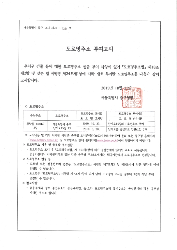 | 제목 | 도로명주소 부여 고시 | ||