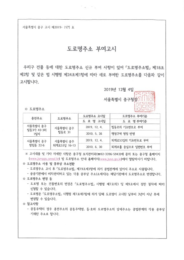 | 분류 | 일반공공행정 > 일반행정 > 주소정책 > 도로명주소 부여 및 폐지 고시 | ||