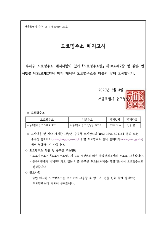 제목 도로명주소 폐지 고시