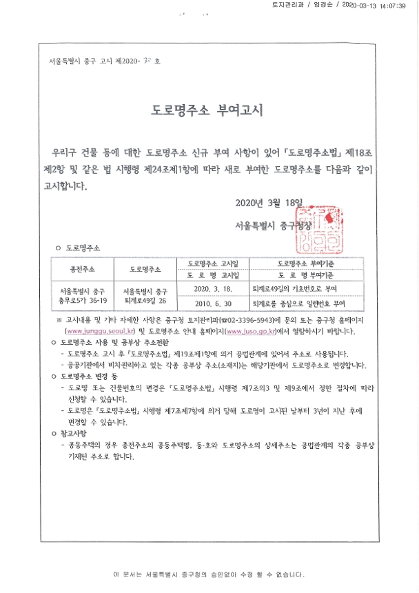 | 분류 | 일반공공행정 > 일반행정 > 주소정책 > 도로명주소 부여 및 폐지 고시 | ||