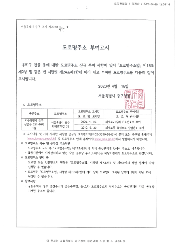 | 분류 | 일반공공행정 > 일반행정 > 주소정책 > 도로명주소 부여 및 폐지 고시 | ||