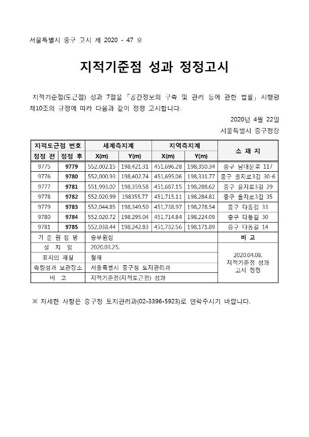 | 제목 | 지적기준점 성과 정정고시 | ||