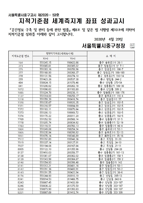 | 제목 | 지적기준점 세계측지계 좌표 성과고시 | ||
