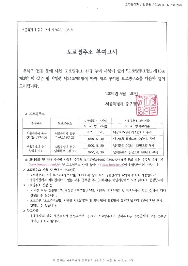 | 분류 | 일반공공행정 > 일반행정 > 주소정책 > 도로명주소 부여 및 폐지 고시 | ||