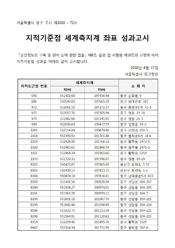 | 제목 | 지적기준점 세계측지계 좌표 성과고시 | ||