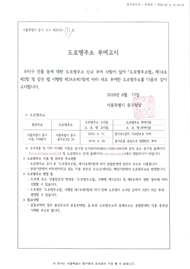 | 분류 | 일반공공행정 > 일반행정 > 주소정책 > 도로명주소 부여 및 폐지 고시 | ||