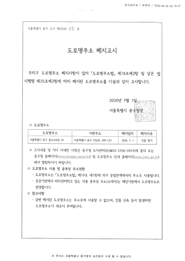 | 분류 | 일반공공행정 > 일반행정 > 주소정책 > 도로명주소 부여 및 폐지 고시 | ||