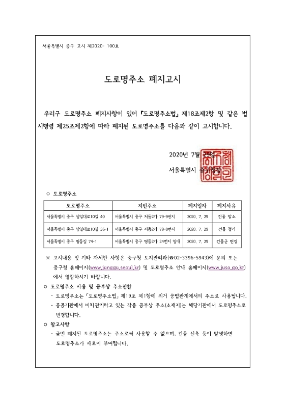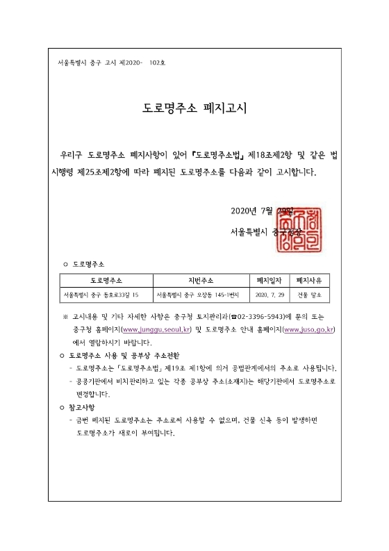 | 제목 | 도로명주소 폐지 고시 | ||
