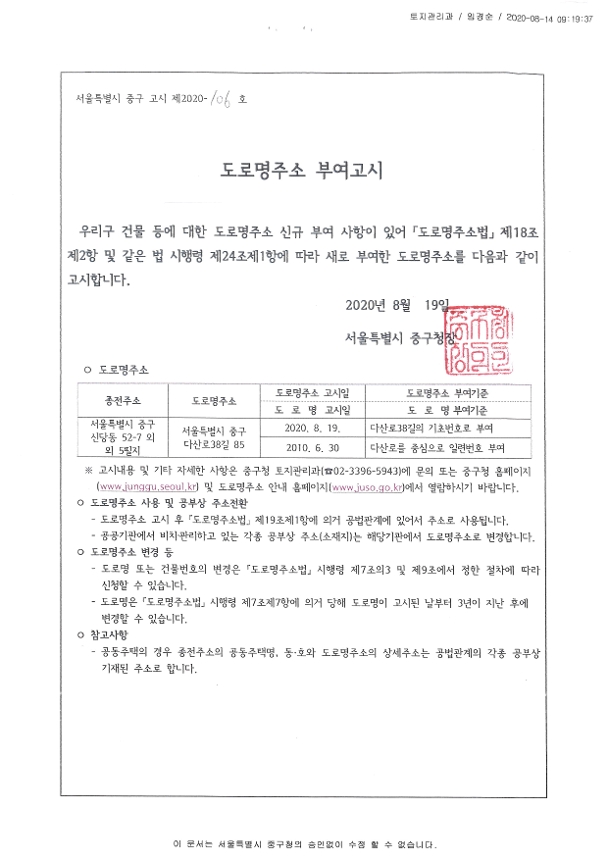 | 분류 | 일반공공행정 > 일반행정 > 주소정책 > 도로명주소 부여 및 폐지 고시 | ||