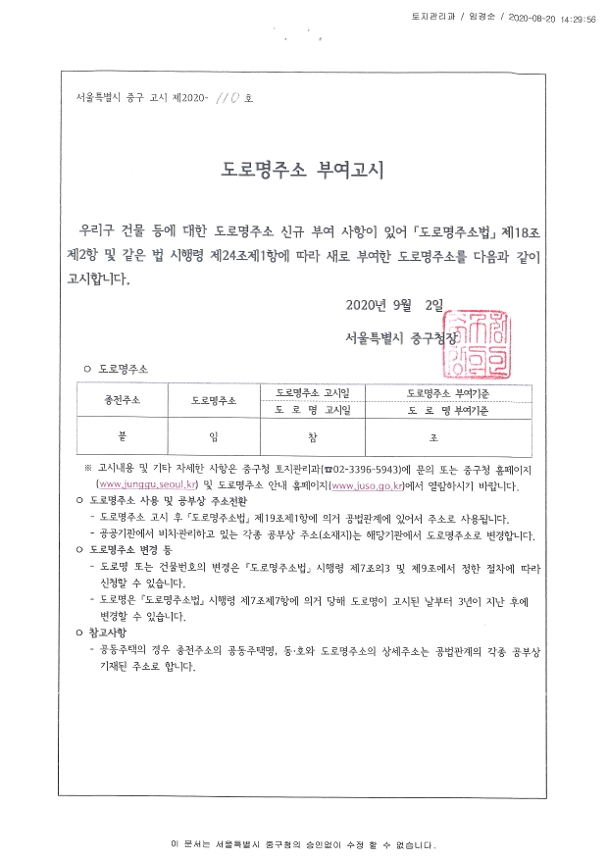 분류 일반공공행정 > 일반행정 > 주소정책 > 도로명주소 부여 및 폐지 고시