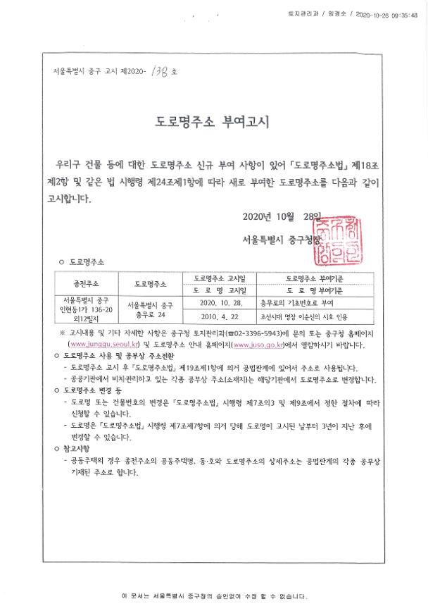 | 분류 | 일반공공행정 > 일반행정 > 주소정책 > 도로명주소 부여 및 폐지 고시 | ||