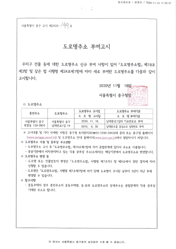 분류 일반공공행정 > 일반행정 > 주소정책 > 도로명주소 부여 및 폐지 고시