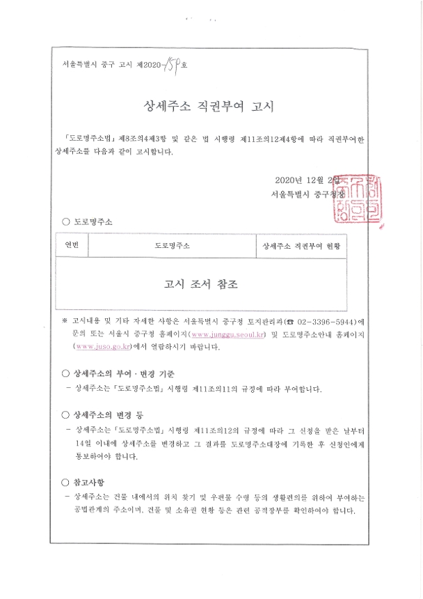 | 분류 | 일반공공행정 > 일반행정 > 주소정책 > 도로명주소 부여 및 폐지 고시 | ||