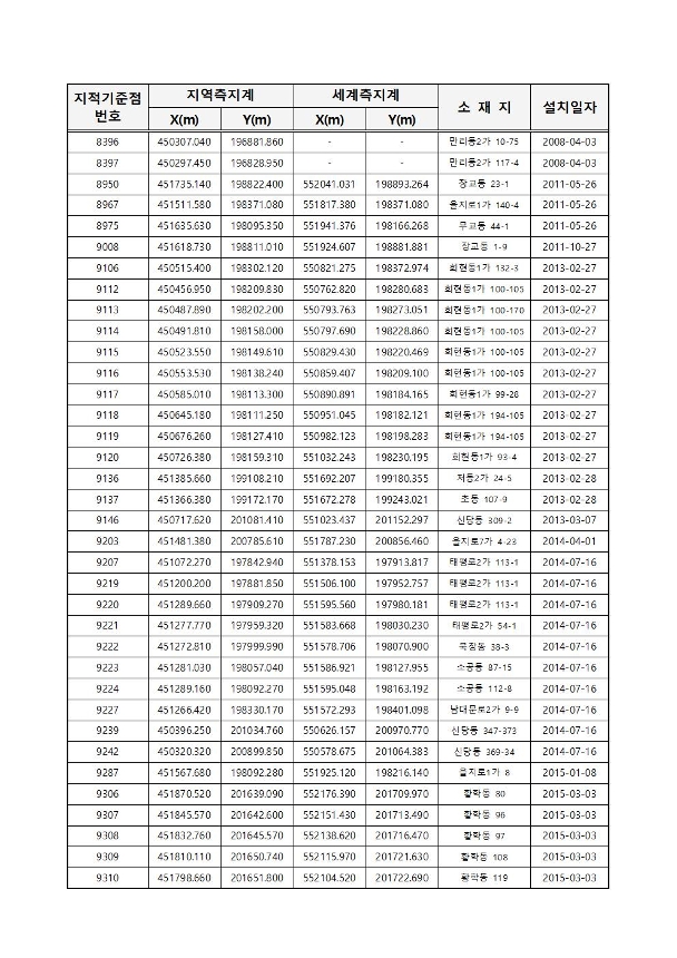 | 분류 | 일반공공행정 > 일반행정 > 일반행정지원(지적) > 지적측량기준점현황 | ||