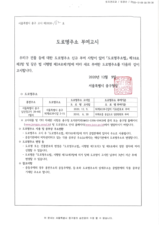 | 분류 | 일반공공행정 > 일반행정 > 주소정책 > 도로명주소 부여 및 폐지 고시 | ||