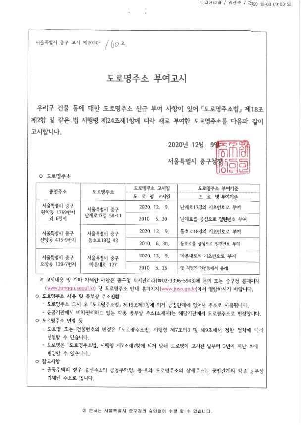 제목 도로명주소 부여고시