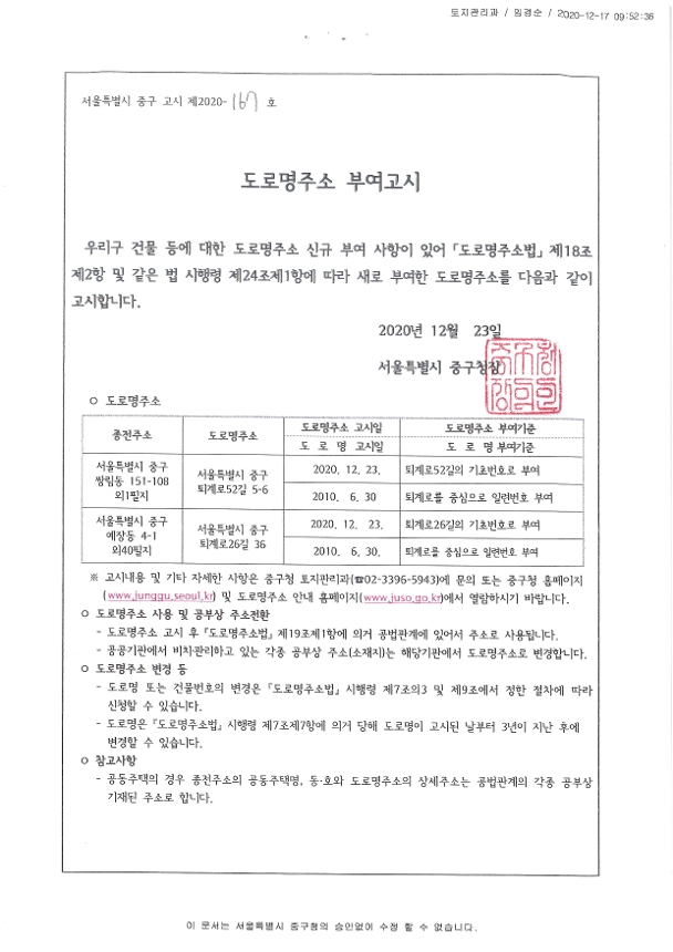 | 분류 | 일반공공행정 > 일반행정 > 주소정책 > 도로명주소 부여 및 폐지 고시 | ||