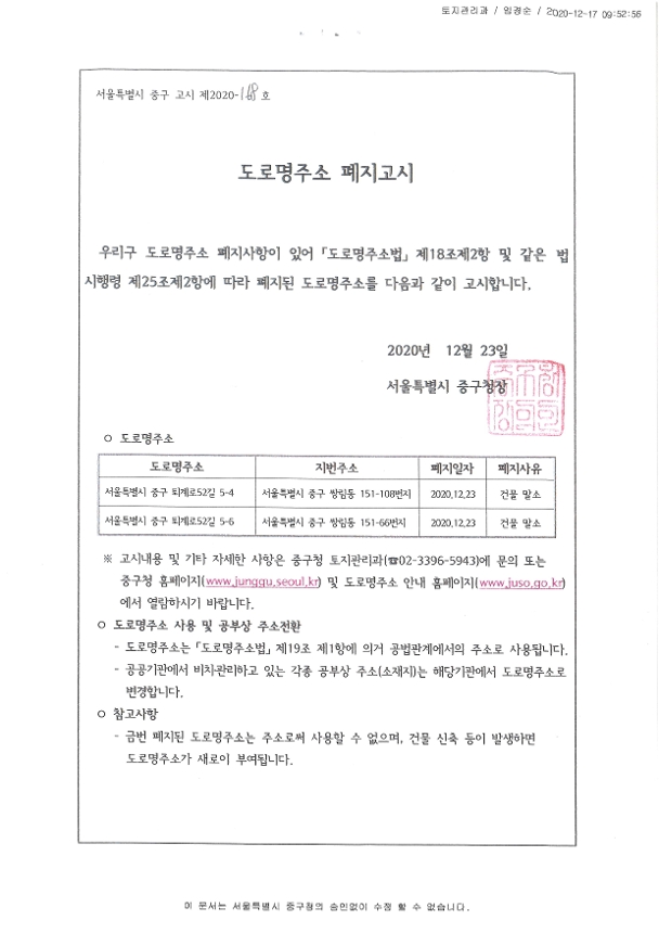 | 분류 | 일반공공행정 > 일반행정 > 주소정책 > 도로명주소 부여 및 폐지 고시 | ||