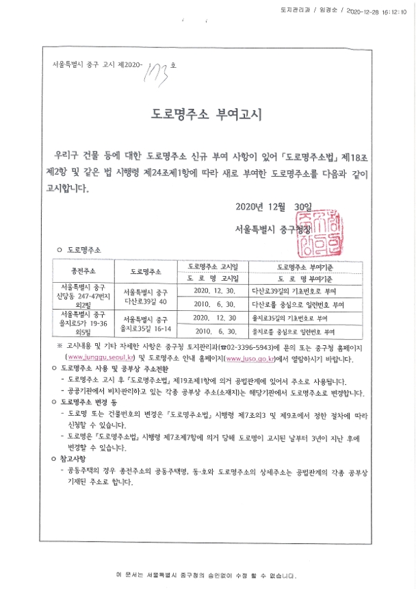 | 분류 | 일반공공행정 > 일반행정 > 주소정책 > 도로명주소 부여 및 폐지 고시 | ||