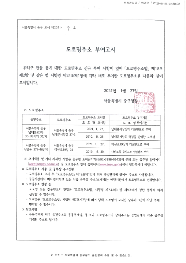| 분류 | 일반공공행정 > 일반행정 > 주소정책 > 도로명주소 부여 및 폐지 고시 | ||
