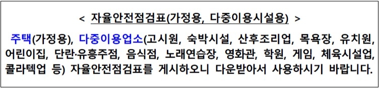 | 자율안전점검표(가정용·다중이용시설용) 홈페이지 공개 | |||