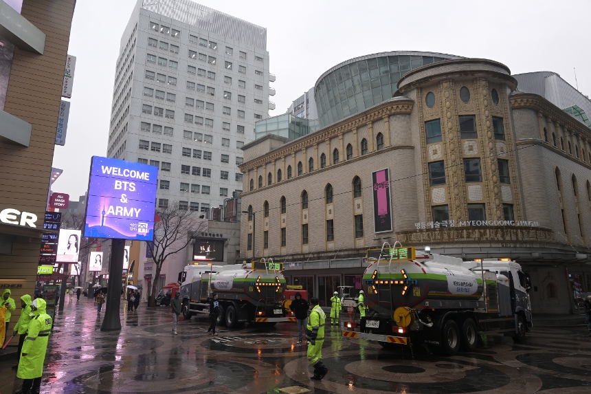 BTS공연 관광객 맞이 명동 물청소