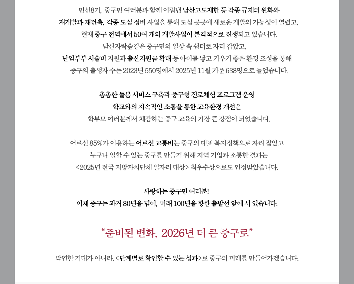 “준비된 변화, 2026년 더 큰 중구로”